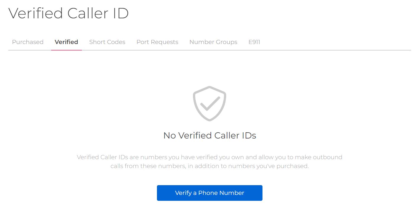 In this tab, you will find a list of phone numbers that you have verified that you already own outside of SignalWire. These numbers are not ported to SignalWire and you will continue to be serviced by the original provider. Phone numbers that are verified on the SignalWire network can only be used with SignalWire as a caller ID for placing outbound calls. The Verified Caller ID guide can walk you through the process if you need more help.