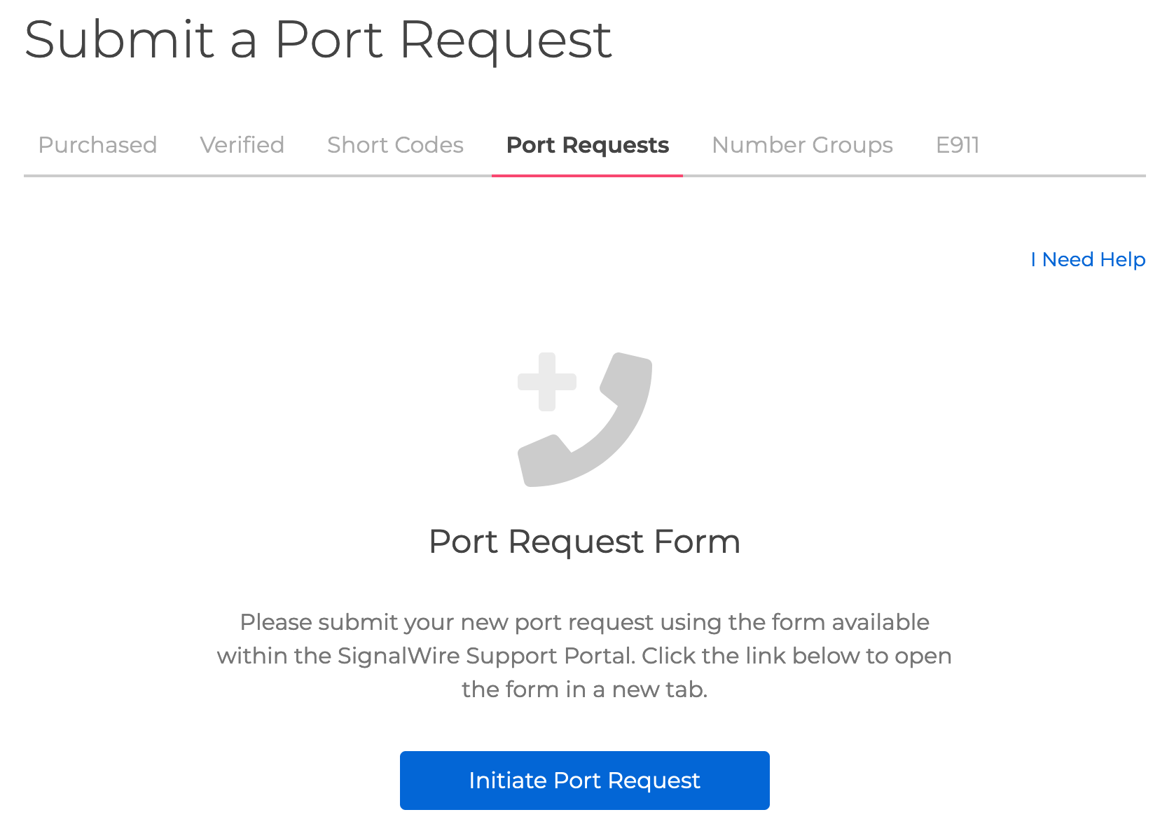 If you decide to port over your existing phone numbers to the SignalWire service, you will submit your port requests here. You can port any number, wireless or business landline. Once successfully ported, the phone number will appear in your Purchased tab with all of your other SignalWire numbers. For more support on the porting process, see guides Porting Into SignalWire and Porting Out of SignalWire.